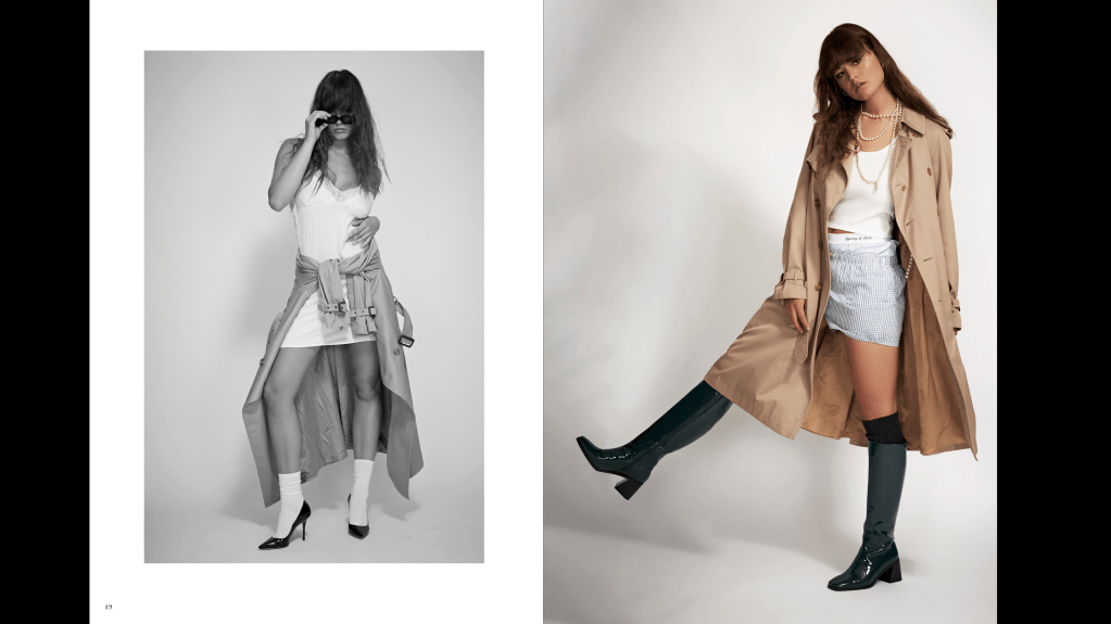 This project was a group work for the Vogue Summer School – 2023. Our goal was to create a concept for the September 2023 issue of British Vogue, the most important of the year. We explore “The Age of Change” a multifaceted concept touching on the changes in the fashion industry, social dynamics, politics, beauty standards, and more. From the digital revolution to groundbreaking beauty innovations, the future is being written and we’re taking the microphone to the authors shaping the narrative. Choosing the cover was not an easy task, as be on the cover of the Voguer September issue it’s a great honor and a privilege for few. For the Classical Shoot as a concept we wore inspired by the iconic Twiggy and Jane Birkin, our muse for this exudes an air of effortless elegance. Amidst her busy lifestyle, there’s one item she never leaves behind – the trench coat, a timeless piece that adds sophistication to any outfit. Whether she’s meticulously put together or rushing out the door, she radiates a fabulous aura that turns heads wherever she goes.